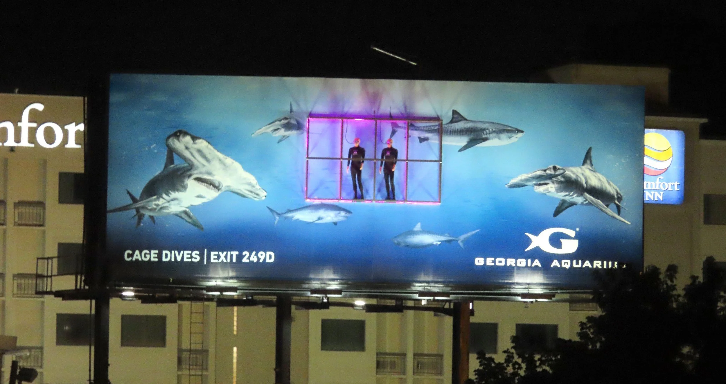 We launched the new Cage Dive exhibit with a 3D spectacular—a downtown Atlanta billboard featuring a dive cage and mannequin scuba divers. The installation drew so much attention that it had to come down early after the divers became target practice. On the bright side, the controversy earned us a wave of unexpected PR.